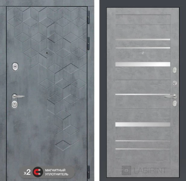 Дизайнерская входная Дверь Бетон класса Люкс с несколькими листами стали, звукоизоляцией и теплоизоляцией. Утепленный короб и полотно защитят от сквозняков и шумов. Модель не только надежная, комфортная, защищенная и высочайшего качества, но и очень красивая! Будет отлично сочетаться с интерьером дома, квартиры или офиса. Сейчас действует выгодное предложение по цене: 55 387 руб.